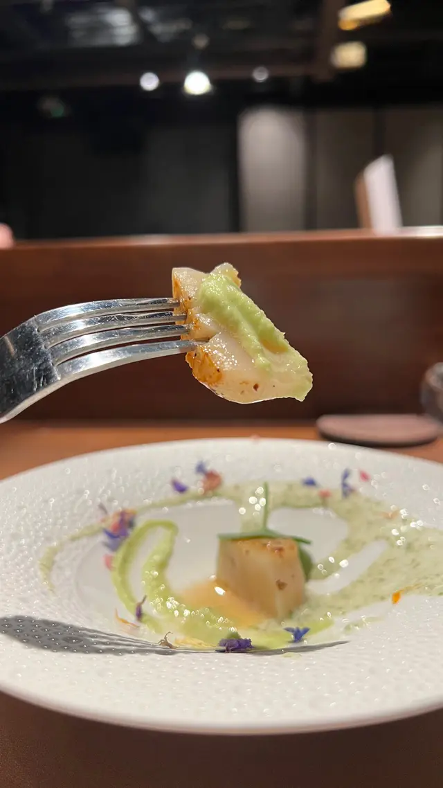 這款香煎帶子煎符剛剛好,再配上兩款醬汁-枝豆汁和羅勒醬,帶出帶子的鮮味。