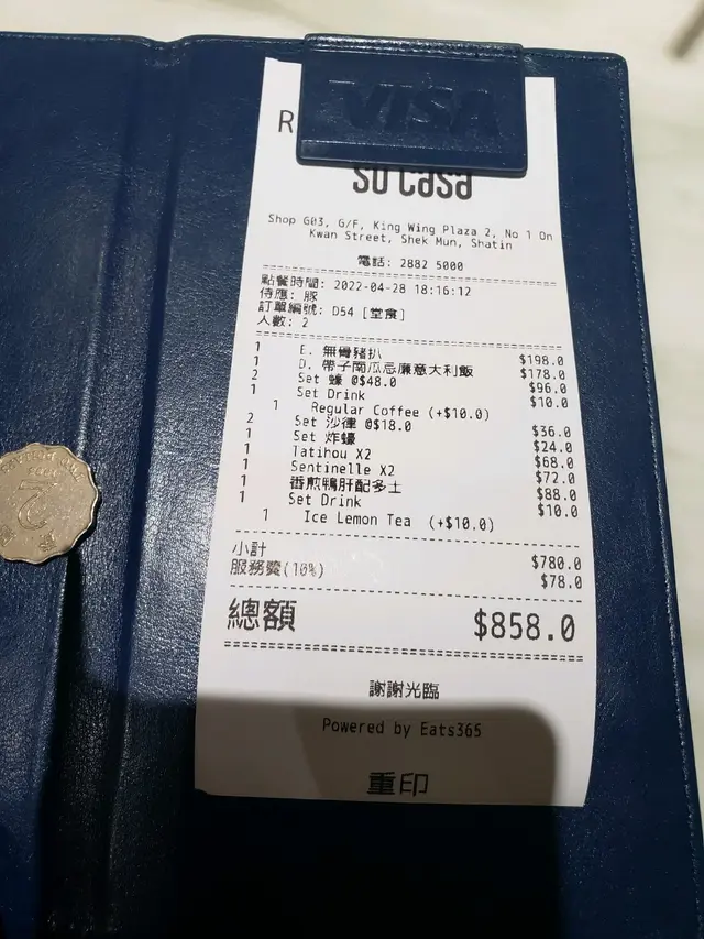 埋單連加一$858,以上每款食物都做得不錯,連餐湯也好好飲(平時在外面餐廳,那個餐湯,我都係飲兩啖便放低,呢間既餐湯都被我飲光😂)及即磨咖啡(有豆香)。