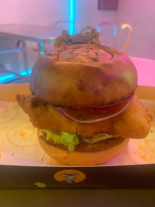 而我自己就因為唔食牛嘅關係,所以選擇咗炸雞漢堡,佢呢個漢堡真係喜出望外,麵包係經過烘焙,而雞 咬落去時候呢有好多肉汁走出嚟,如果你加$18仲可以跟埋小食,我自己就揀咗脆薯圈,加埋一杯冰凍嘅嘢飲,真係幾Chill😂