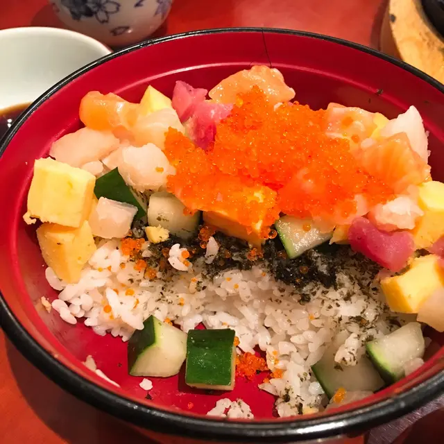 返上面鋪滿魚生,大多是三文魚粒😍都有少量大皮粒和吞拿魚粒。