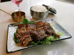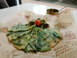 其實好少叫kimchi pancake以外嘅煎餅,但今次朋友又好想食韭菜嘅東東,好啦,就give it a try. 賣相幾似茶樓薄撐,我幾鍾意佢粉量唔多,個ratio唔錯,點嘅紅卜卜醬都唔會好辣,都真係好夾!