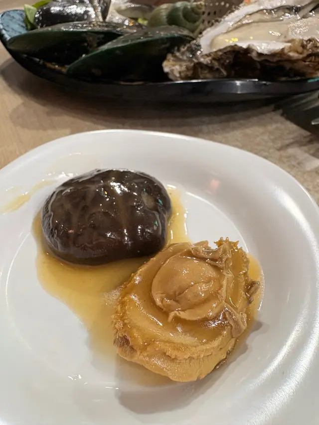 跟住嘅秘製原隻南非乾鮑就略為失色。鮑魚醬汁都幾香,但可能煮得太耐,口感有啲靭,咬落去唔係咁軟滑,略為失望。