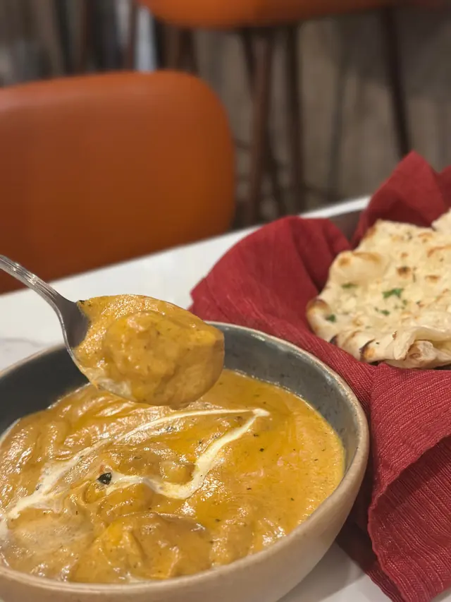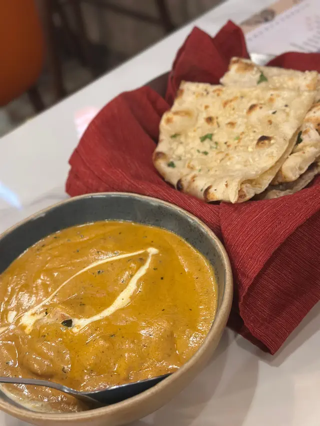 2.Butter Chicken。呢個咖喱醬好香濃,有少少微甜,雞肉好滑,最正係配埋 Garlic Naan 一齊食,超滿足。