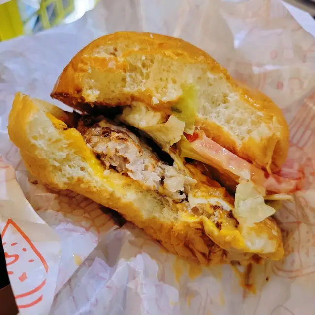 漢堡包的頂及底部的表面光滑,烘得金黃,有著酥脆接著鬆軟的質感,實在得來也有空氣感。餡料都是店員仔細疊好的,賣相工整。