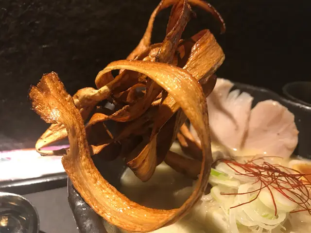 再試朋友的雞白湯拉麵🥳外觀真的很霸氣~脆炸成金黃色的牛蒡條有點像金色的鶴喔🦆入口香脆,滲點雞湯更好味