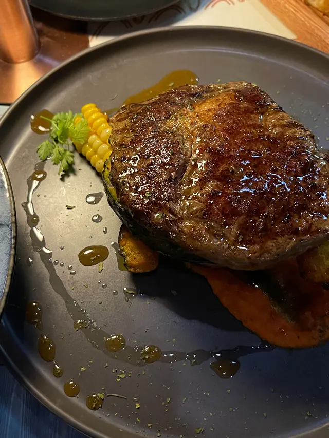 今次叫左7成熟,外面煎到金黃而入面都仲有肉汁,唔會話好柴👍🏽伴菜係粟米、雞髀菇同埋南瓜都係加分位,比起9成餐廳會係薯條/薯蓉,雜菜都係無咁漏既選擇