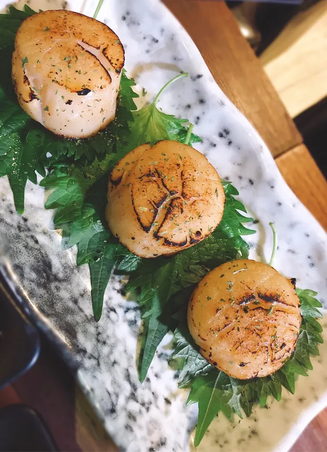 海鮮類都好好食「珍寶松葉蟹棒」長過我手板🦀「珍寶燒刺身帶子」大過個$5硬幣 大廚好有技巧咁將帶子外層煎香 我都係第一次食半生熟嘅帶子刺身