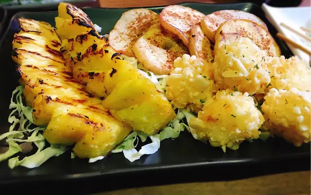 雖然我唔食菜但我食生果嘅 所以食串燒一定唔少得要食燒菠蘿 呢度嘅燒鮮菠蘿厚身又多汁又甜 好抵食🍍第一次試埋燒蘋果片 大廚好有心思將蘋果切成薄片 燒到佢外脆內軟 依然保持到蘋果嘅爽口🍎