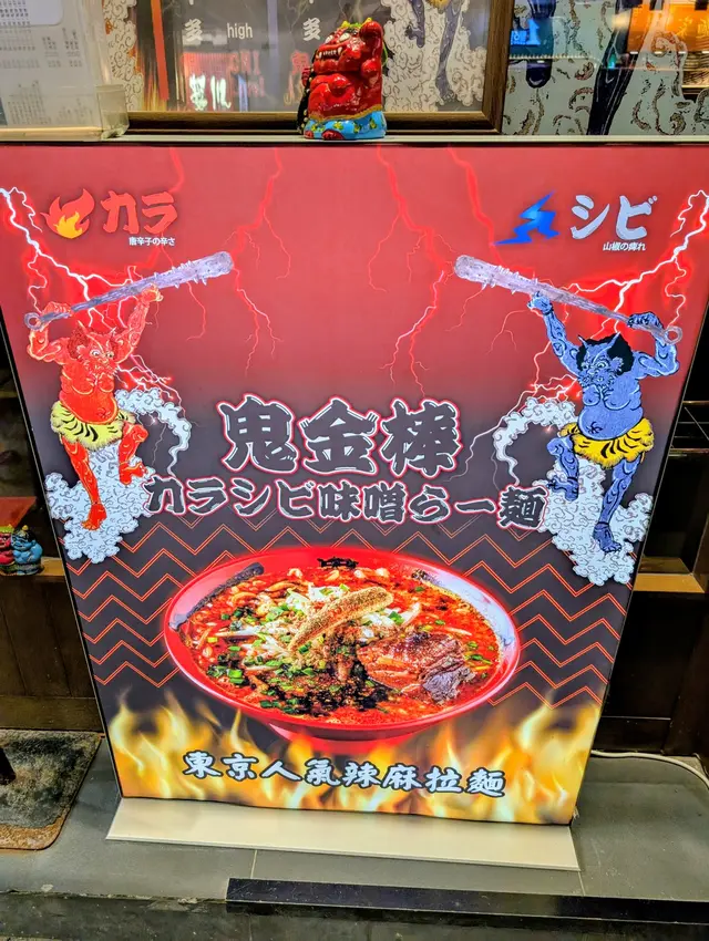不得不說原來鬼金棒店名的日文原義來自成語「鬼に金棒」(おににかなぼう),意思是「讓鬼持有金棒(狼牙棒)」。鬼本身已經十分強大,若再拿上武器,更加無敵,這就在日語裡有如「如虎添翼」之意。「鬼金棒」也正正巧妙結合了拉麵上的配料,這碗拉麵的正中間也放了一支金棒 (玉米筍)、看到沒?!