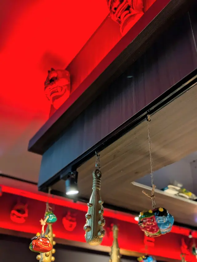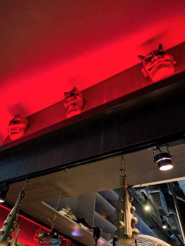 環境偏暗黑系,鬼面裝飾極具特色,充滿日式地下感,很有「主題店」氛圍。座位不多,偏緊湊,但翻桌率快。服務員態度專業,落單與出餐效率高。