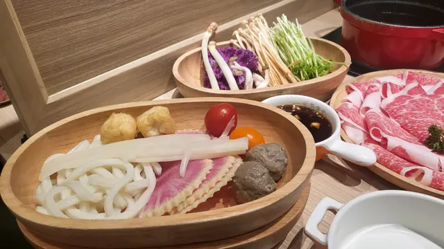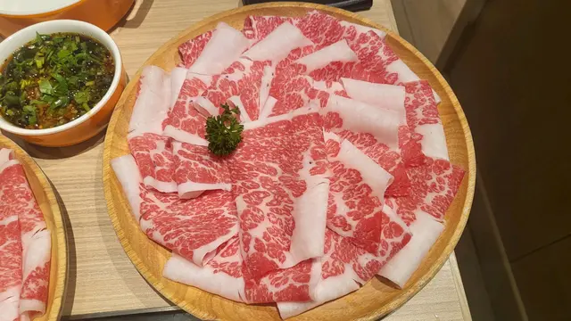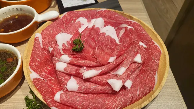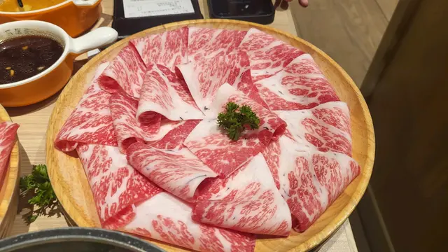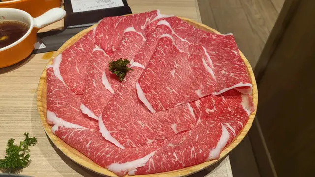 放題套餐,店員問有冇興趣加多幾十蚊升級特選和牛,我又覺得冇咁嘅必要,肉未到之前出去自助區夾下D配料,講真款式唔多,但有些特色蔬菜出面係比較少見,至於丸類略為普通, 牛肉上枱第一視覺😎🉐️,油花分佈唔錯,咋咋臨隊入鍋先,入口非常軟淋 😋,三百幾蚊有呢個質素,個人認為值得,咪住……🥴last分開order嗰3碟就出事,油花比例明顯跌watt,口感嚡,睇圖會見到好大分別