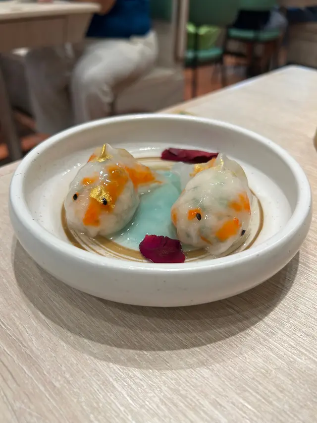 生動可愛🥰好似2條小金魚游來游去! 好特別! 𥚃面有鮮蝦同金筍、味道仲好好味👍🏻