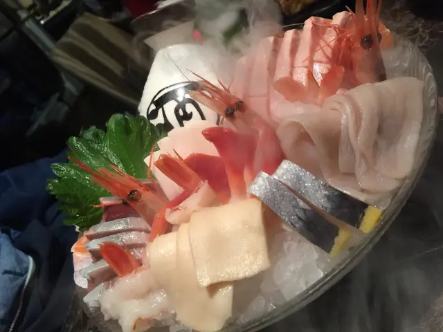 刺身上枱時煙霧瀰漫,甚為吸引。而且冇最怕既上枱時墊底冰已溶的情況。刺身出奇地新鮮,魚生及蝦刺身均没有腥味。象拔蚌爽脆鮮甜、三文魚及蝦刺身質感軟滑、劍魚腩油脂豐富爽口,油甘魚柔滑結實。