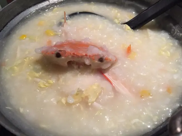 蟹粥內有一隻奄仔蟹,由於奄仔蟹糕豐富,把蟹糕挖出後攪勻粥底,實在甘香美味。