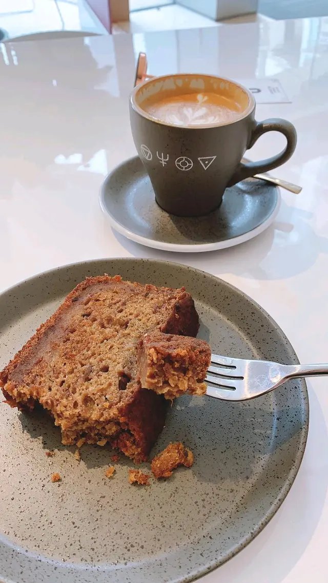 我點左一杯latte同一件香蕉蛋糕。一向喜歡手沖咖啡嘅我,今日反常地點咗奶啡。咖啡嘅香味濃郁,偏堅果味,與奶香平衡。佢嘅奶泡都打得好細滑而綿密,拉花飲都尾都無太大走樣或泡泡爆開。