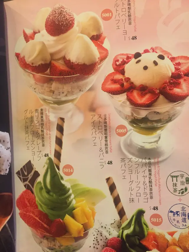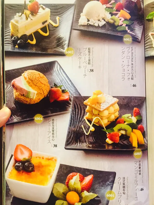 我地食果陣係下午茶時段,本餐牌入面有單張既menu,寫住『超值套餐,全日優惠,不分時段』,好吸引,叫個拉麵加大大杯果茶先$52+$8,仲有個底部寫住下午茶時段(2:30-6)所有甜品8折,野食種類太多,產生左選擇障礙症,經過5分鐘遲疑,終於揀到各人各點一個拉麵+果茶,再黎點多兩份甜品。