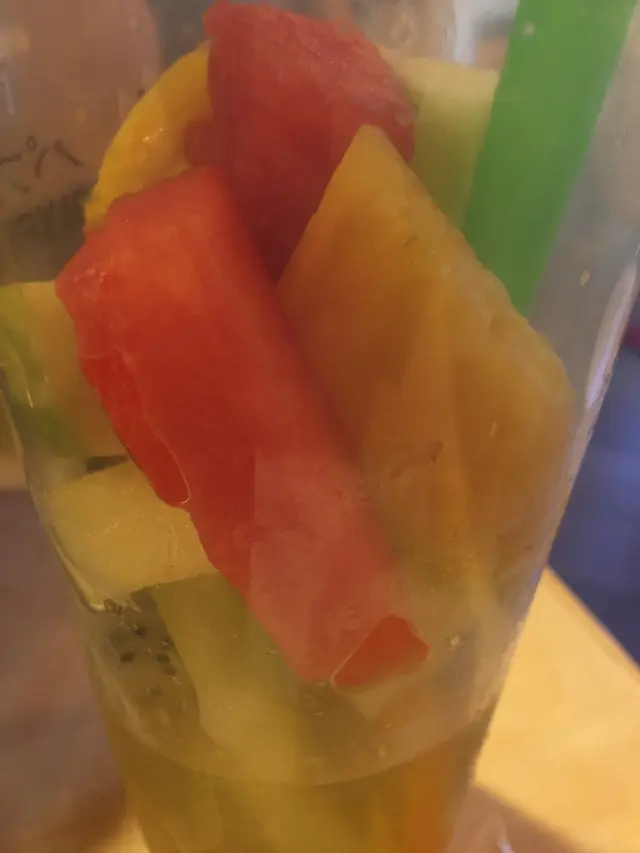 餐飲先上枱,霹靂大杯,SIZE直情媲美7仔既自由斟大杯裝既容量,入面裝住好多生果,打開蓋邊食生果邊飲,生果好新鮮&甜,帶微甜果香,飲完無口渴或偏甜感,呢個價錢+包裝+容量+味道,真係性價超乎想像。