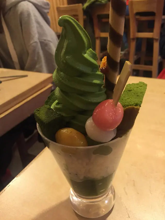 另外一個係抹茶雪榚芭菲,佢既高度等同埋杯果茶一樣咁高&大杯,抹茶軟雪榚量亦多,重抹茶味&口感頗細滑,呢一杯芭菲性價好高,有齊丸子、蕨餅、寒天啫喱、甘栗&威化。(呢杯雪榚芭菲打左折之後好似40蚊都唔使),都係果句,抵到再一次流淚。