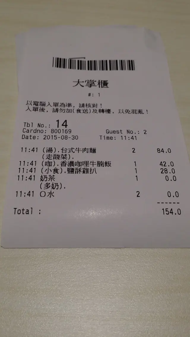 埋單 $154.00