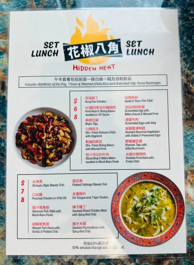 鋪頭原址係以前一間叫美談嘅韓國餐廳 (以前都有介紹過),宜家就轉咗做哩間食川菜嘅餐廳。本來我以為川菜餐廳都會有股辣油味,入到嚟又無喎。咁我哋4個人諗住一人叫一個餸,我以為一個餸配一個飯,點知侍應同我哋講出面裝飯同埋出面拎小菜、飲品。跟手我同事同我講哩到啲飯、飲、小菜係任食架,我即時喜出望外,心諗咁我咪可以食到好飽