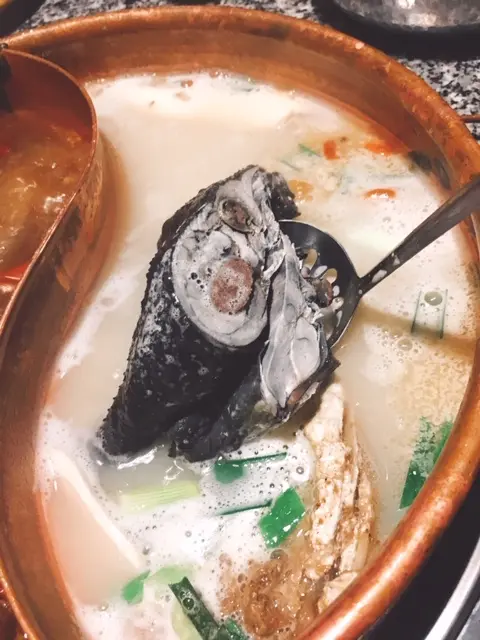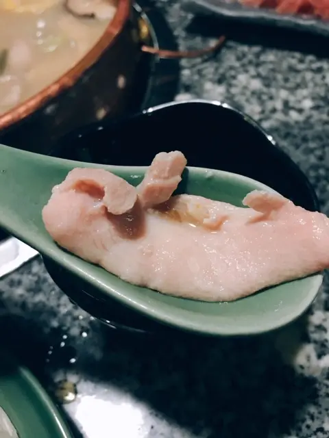 另一邊為寧神養心鍋 ($168), 以川芎, 白芷, 天麻, 當歸, 鮮鷄, 豬肉及鮮魚淆成,滾起時已聞到好香藥材味!  有魚嘅湯通常都係奶白色,未食先飲頭啖湯,飲落好香藥材味,但又唔會過濃,入口舒服又好味, 真係好似一碗補身湯!