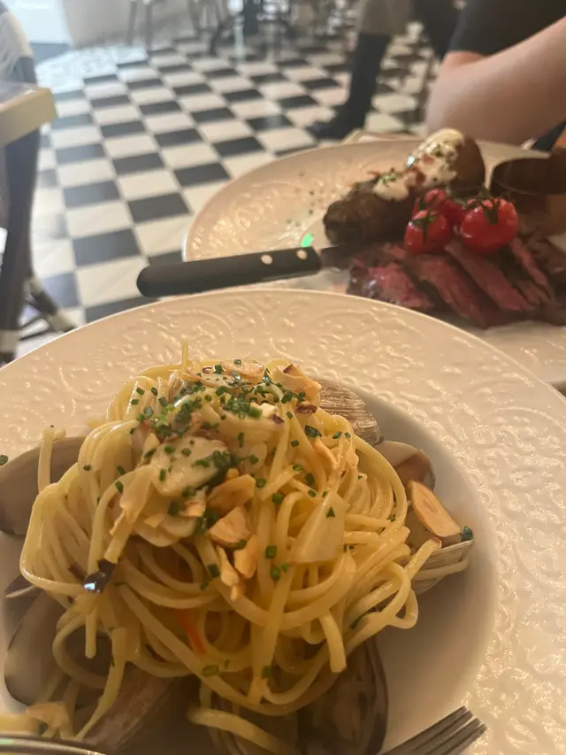 Main course方面我哋另外仲嗌咗個 香蒜鮮大蜆扁意粉。入面有好多隻蜆,仲要全部都好大隻。不過要留意返佢會有啲啲辣,所以完全食唔到辣嘅要小心。