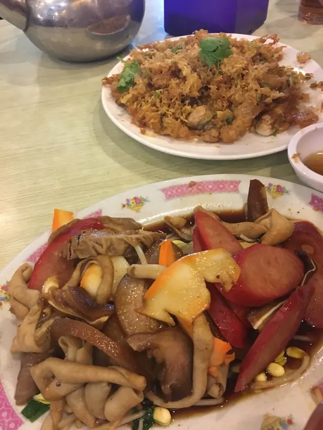 食物實而不華,媲美真正的大排檔。價格非常相宜,我和老公叫了個蠔餅,雜錦潮州打冷滷味,一份豬紅,一蝶沙嗲牛肉炒河,兩罐汽水,結賬為三百多元。食物碟頭不細。是次重點欣賞豬紅,很滑,不太咸,亦香口。另外是沙嗲牛炒河,上枱時河粉上鋪滿沙嗲醬有些菠蘿,不像傳統潮式沙嗲牛炒河,但一品嚐下,沙嗲醬汁在有香辣亦有香甜,非常好吃!蠔餅不完全是傅統潮式味道,但用的蠔大粒和鮮味,值得推薦。會再訪!