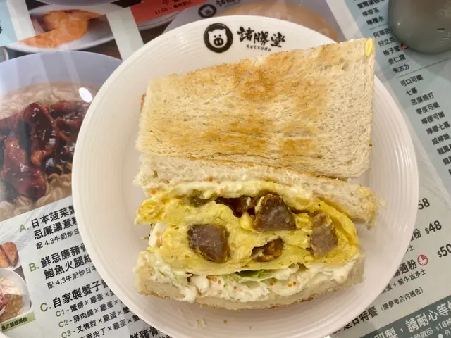 同埋#下午茶 餐叉燒粒+雞蛋+蟹子醬+生菜三文治 $32