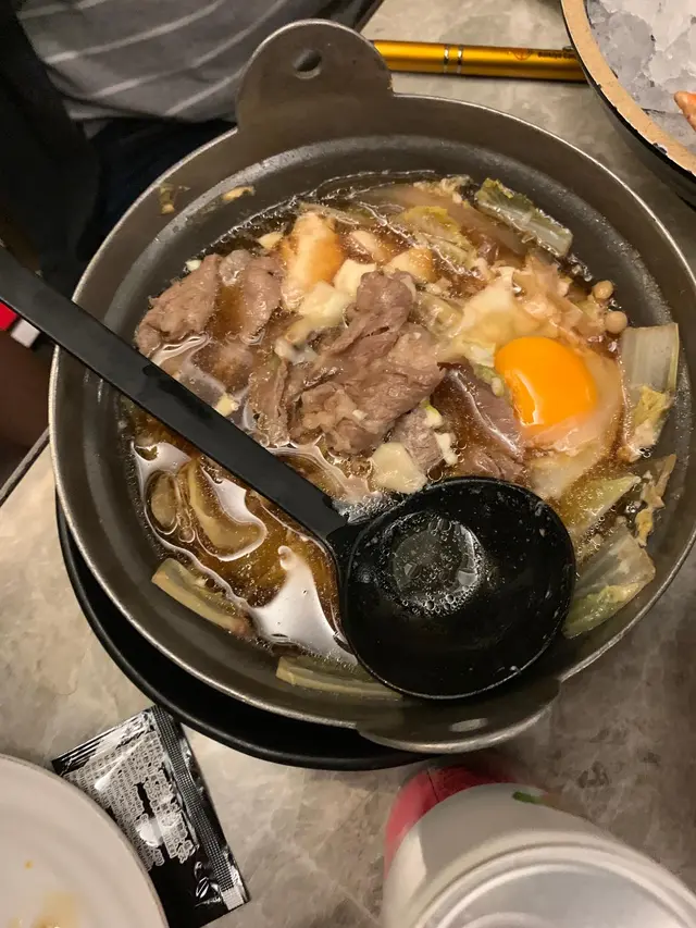 壽喜燒份量適中,有唔少牛肉,同菜, 個湯好清,就算加埋D牛都唔會好油膩.