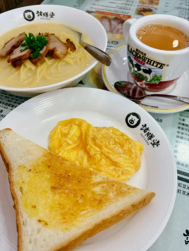 🏅自家製叉燒鮮忌廉豬骨湯意粉+4.3牛奶炒日本滑蛋+鮮牛油多士+熱奶茶($ 56)