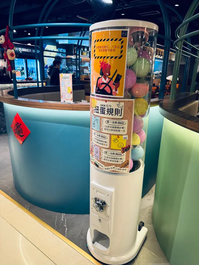 新店的門口有一部扭蛋機 消費滿指定金額就可以扭蛋