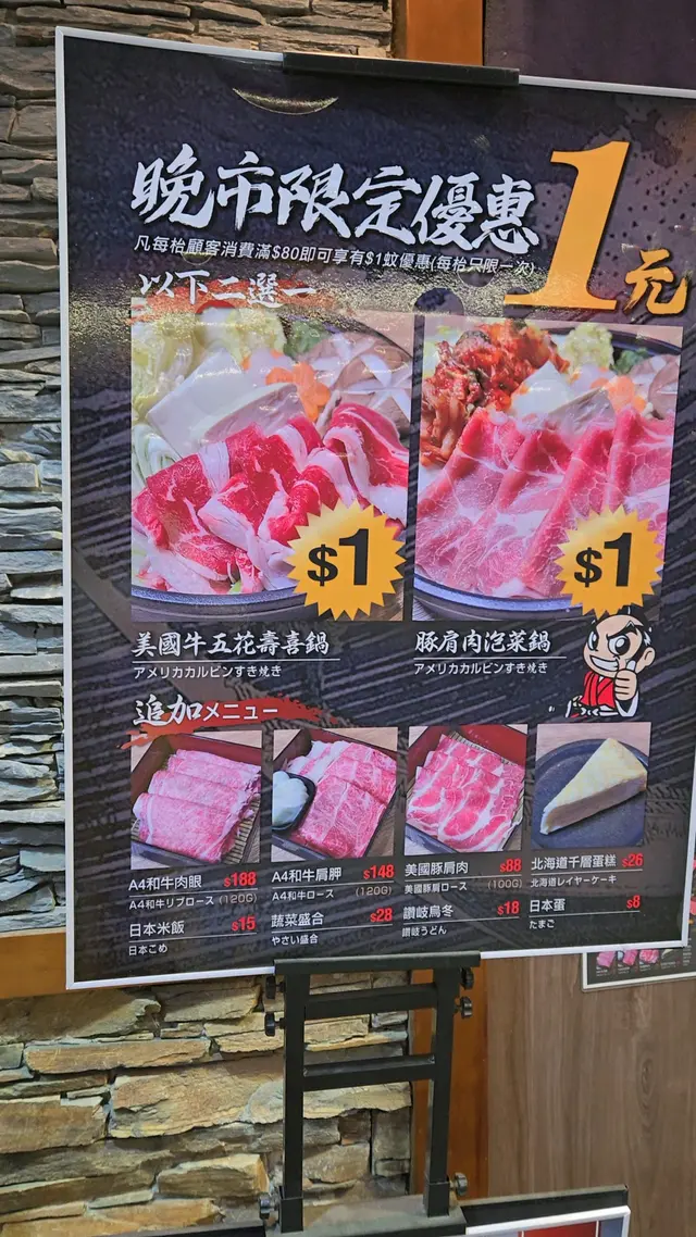 每枱消費$80,就可加1蚊食壽喜燒。