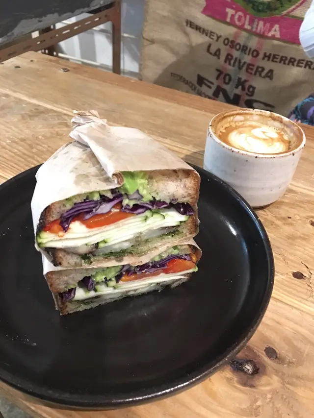 事物都整頓過。無論是食物、咖啡、人物都完整左。喜歡這裡的食物,有全素提供,三文治多用蔬果做餡,有些是ham, salmon較為健康。飲品方面,咖啡、花茶也有。咖啡師很細心,會問你想飲咖啡口味,一般cafe店有的咖啡,這裡也有。下次再有多啲時間會試他們的精品咖啡。這店也有蛋糕提供,款式較一般店特別,用料用上靚貨,下次一定會試試。