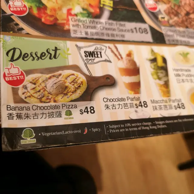 香蕉朱古力披薩$48