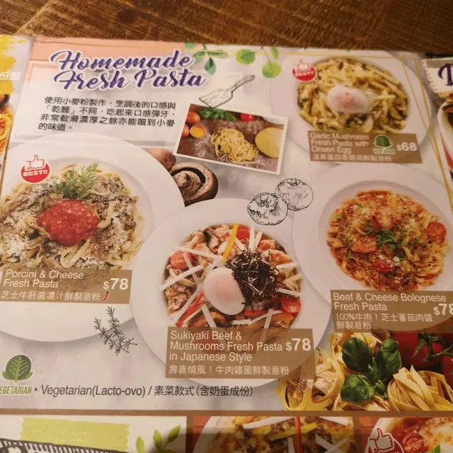 溫泉蛋蒜香蘑菇鮮製意粉$68