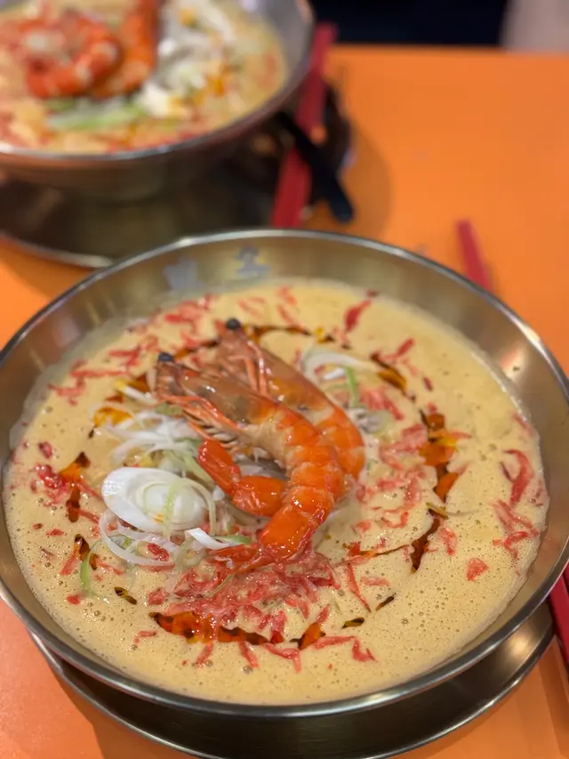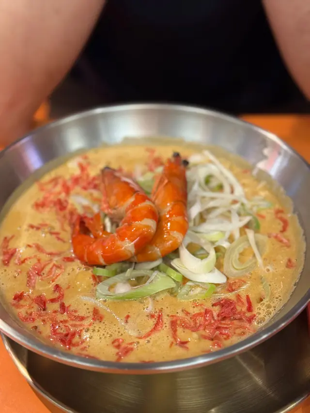 Menu好簡單,只有一款湯底:醬油蝦濃湯,可以揀拉麵或刀削麵底,我哋就揀咗各一。第一啖一定係試湯底先,好濃郁嘅蝦味,因為湯底係由蝦頭每日新鮮熬成嘅,真材實料,好有驚喜!本人覺得配拉麵感覺完美啲,因為比較掛湯。我哋連成碗湯都飲埋。