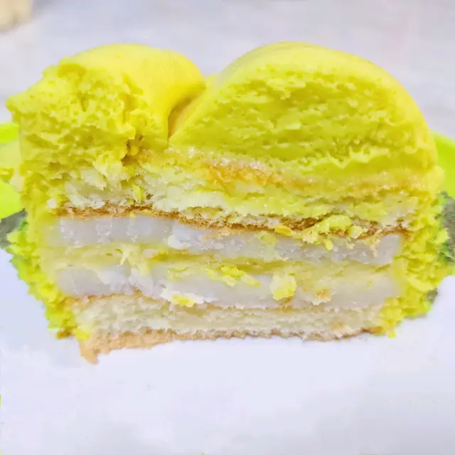 呢個係榴槤造型嘅蛋糕 [ Durian $88 ] 淨係睇賣相已經勁似,本身係榴槤控,見到呢款造型蛋糕已經覺勁吸引,𥚃面用咗榴槤肉整成嘅Mousse、煙煙韌韌嘅麻糬及軟綿綿嘅海綿蛋糕,口感層次分明,每一啖都食到濃郁嘅榴槤香,超好食