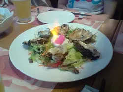炭燒蠔: 做緊promotion$68半打, 即order半打, 上檯時有火焰做伴碟, 蠔入口鮮甜, 應該加左酒去燒, $68抵