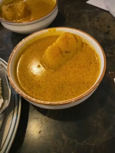 •咖哩汁:咖哩汁嘅香氣濃烈,每次碗內都必定有一舊大薯仔,狀雖稀而味不稀,帶有南洋風味,偏辣但不過火,能夠恰到好處地滲入飯粒,令整碟飯更加惹味,味道層次豐富。
