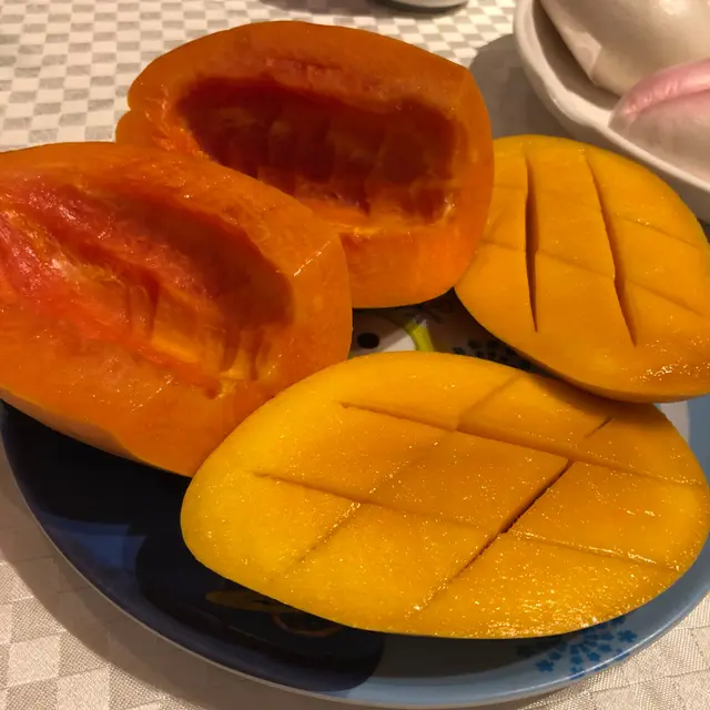 果盤是木瓜及芒果。大大件,全都很甜。