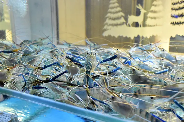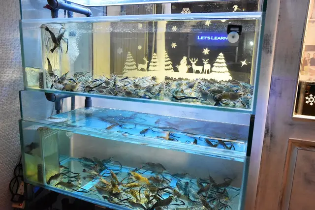 清澈的魚缸內有圍數不少的生猛大頭蝦,即撈即煮,確保新鮮。