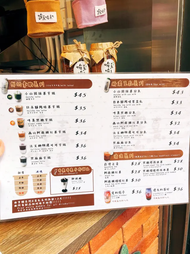 「小山園抹茶拿鐵🍵($45)」嘅抹茶味同奶味都好香 有回甘 但🐰小編呢個綠色抹茶怪覺得抹茶唔夠濃🦖「黑麻麻拿鐵☕️($36)」係芝麻拿鐵 即叫即做 等個時超香芝麻味🤤芝麻味幾濃 係少見嘅手搖飲品 幾特別🤘🏻btw兩杯嘅珍珠好有咬口 帶微微黑糖甜味