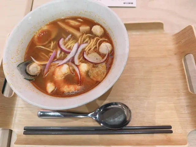 湯底用蝦殼蝦頭經過長時間熬製而成,十分入味,餐廳非常細心,將蝦殼除掉,蝦爽彈鮮美,肉札爽口微彈,青口軟彈煙韌,糖心蛋軟綿綿,蛋拉麵稔香軟彈,洋蔥