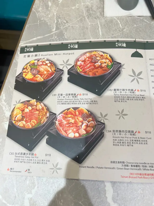 1. 花蓮一品臭臭鍋(中辣)配寬粉 $118