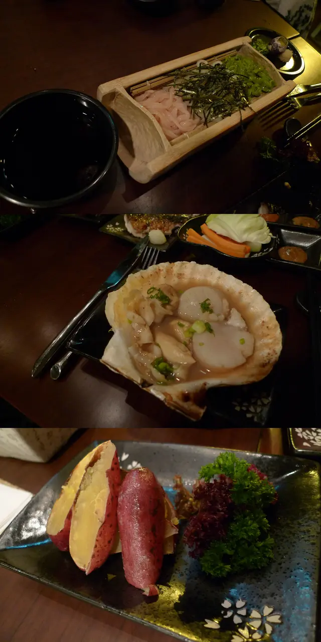 巨峰梳打,魷魚筒,帶子,生牛肉?!