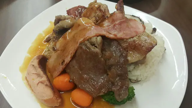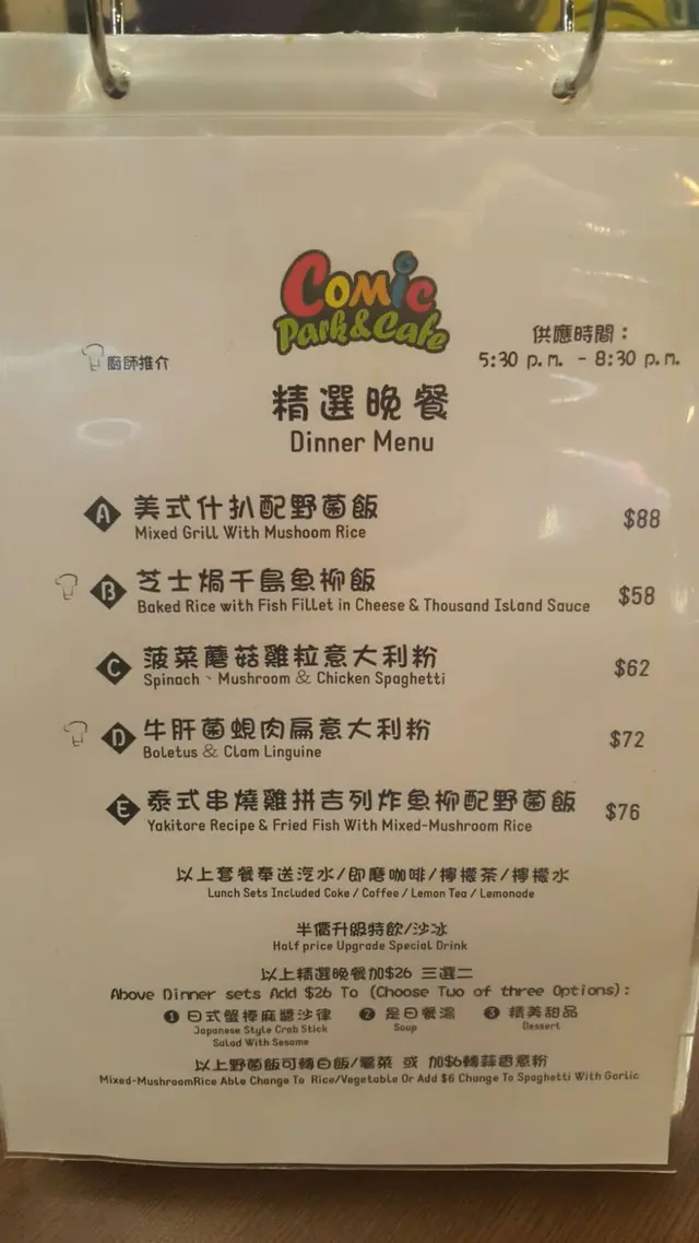 餐廳嘅菜式好多元化,有泰式同美式,揀咗一陣,最後嗌咗個泰式串燒雞拼吉列炸魚柳配雜菌飯同美式什扒配野菌飯