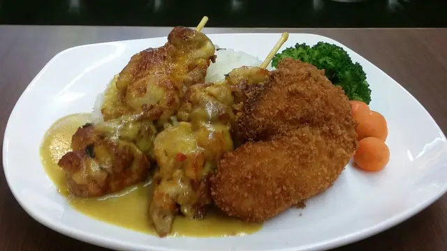 個泰式串燒雞拼吉列炸魚柳配雜菌飯份量好足,一個人食係會好飽,串燒雞好惹味,加上件炸魚外脆內滑,真心推介~