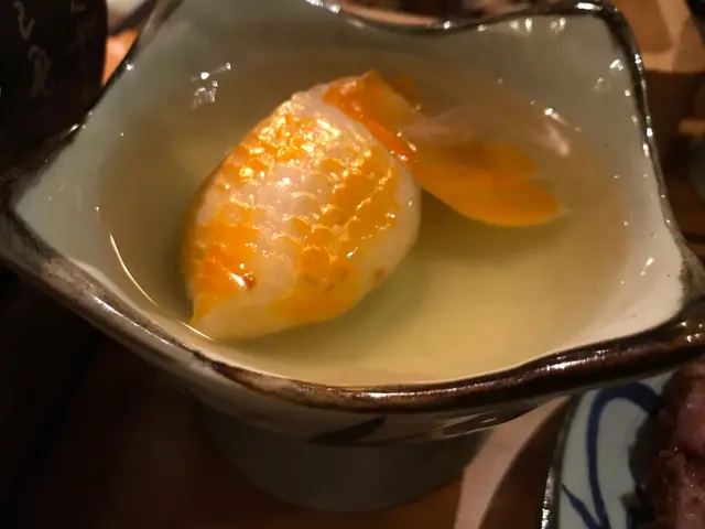 金魚湯外型好得意,食落其實係蝦餃。店員於上菜後提醒要趁熱食,唔係嘅話會好快變硬。個湯飲落味道清淡都唔錯。