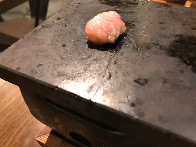 主角吉列牛在上碟前外皮已炸成金黃,中間嘅牛肉仲係粉紅色,約2~3成熟。在石板塗上牛脂後燒十幾秒至7成熟左右就可食用。7成熟嘅吉列牛食落皮脆內軟,肉質嫩滑仲帶有少少肉汁,如果沾上醬汁食用更加好味。