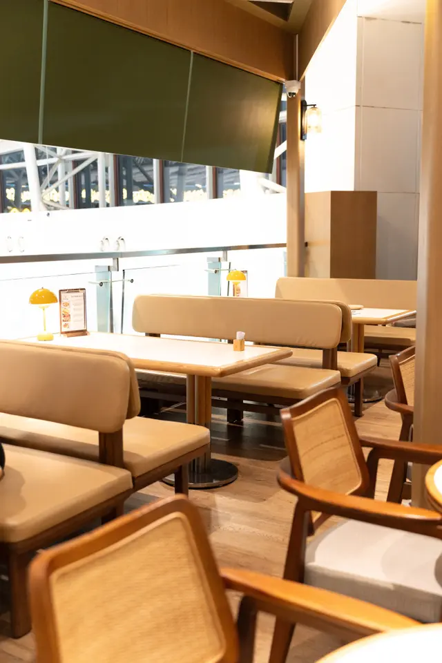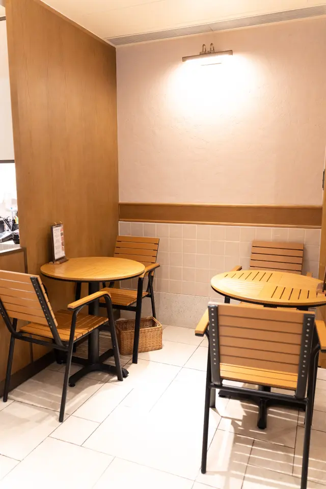店裡環境溫馨,木質桌椅、柔和燈光,營造出舒適氛圍,角落還點綴著綠植,增添了生機。